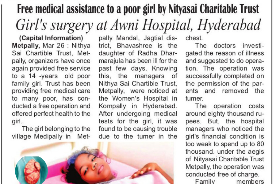 The Nithya Sai Charitable Trust continues to support many such patients through free surgeries, medical aid, and awareness programs for cancer and women’s health. Each life saved strengthens the Trust’s belief that every person deserves care, dignity, and a second chance — regardless of their financial background.